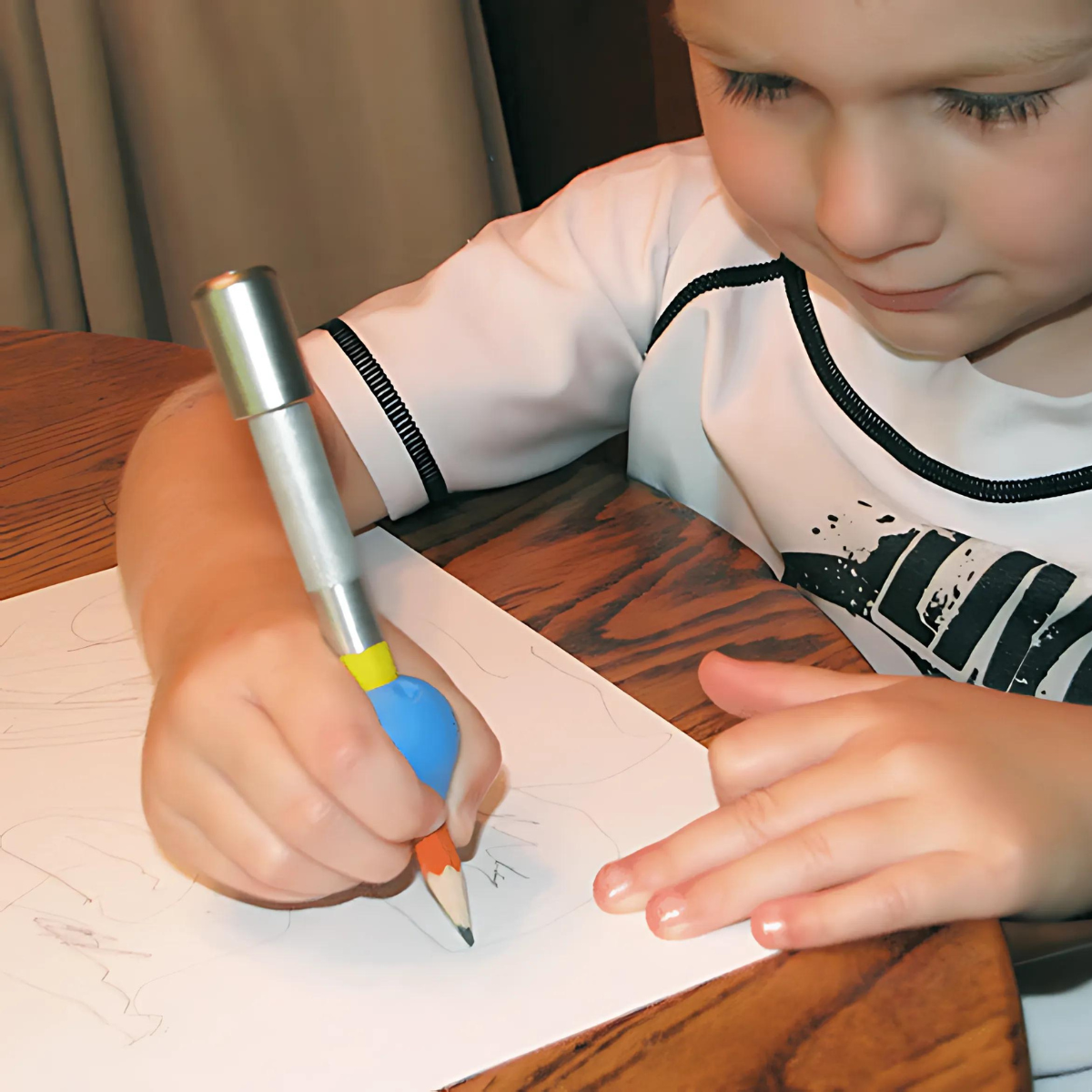 Você também pode adicionar um pacote opcional de 6 lápis curtos de “golfe” no menu suspenso acima. Quando usados ​​com lápis encurtados, iniciantes ou indivíduos com dificuldades motoras finas podem segurar toda a empunhadura na palma da mão para obter suporte adicional. Os terapeutas ocupacionais também costumam promover lápis mais curtos, como forma de forçar as pontas dos dedos a segurá-lo, pois não há espaço para o resto dos dedos descansar. Todos os outros acessórios são vendidos separadamente.
