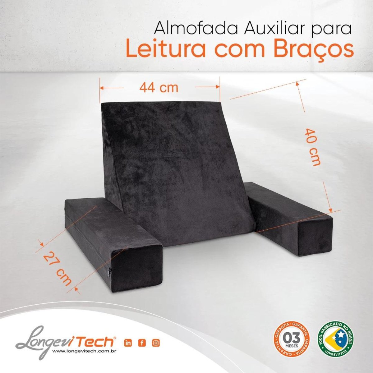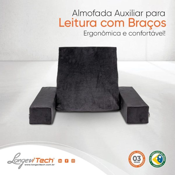 Indicação: A almofada auxiliar para leitura com braços é um acessório muito útil para quem gosta de ler na cama, no sofá ou em qualquer outra superfície. Essa almofada possui um design ergonômico e confortável, proporcionando postura correta, evitando dores e desconfortos na hora da leitura de um livro, apreciando um filme ou simplesmente relaxando.