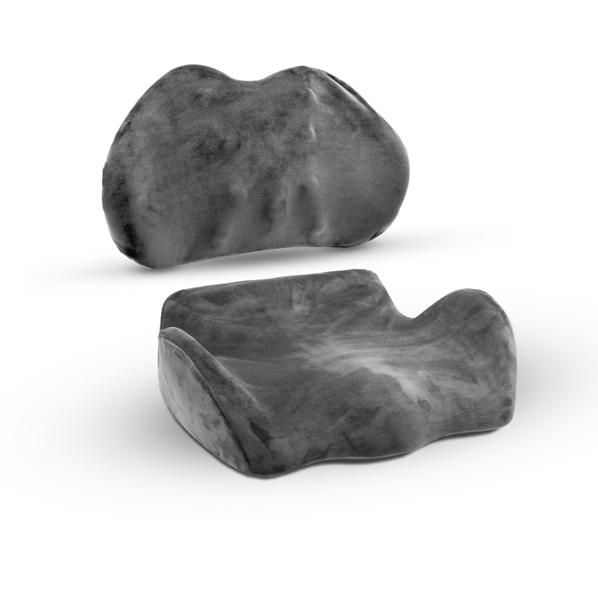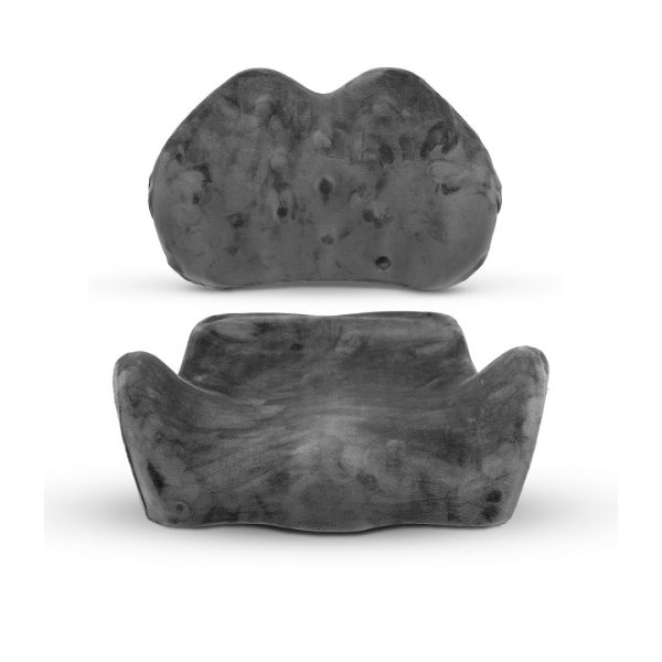 Sua concepção anatômica e ergonômica garante um ajuste perfeito às formas corporais, promovendo uma postura correta e confortável. A capa aveludada em tom cinza chumbo não apenas confere um toque suave, mas também é facilmente removível graças ao zíper, facilitando a limpeza e a manutenção da higiene.
