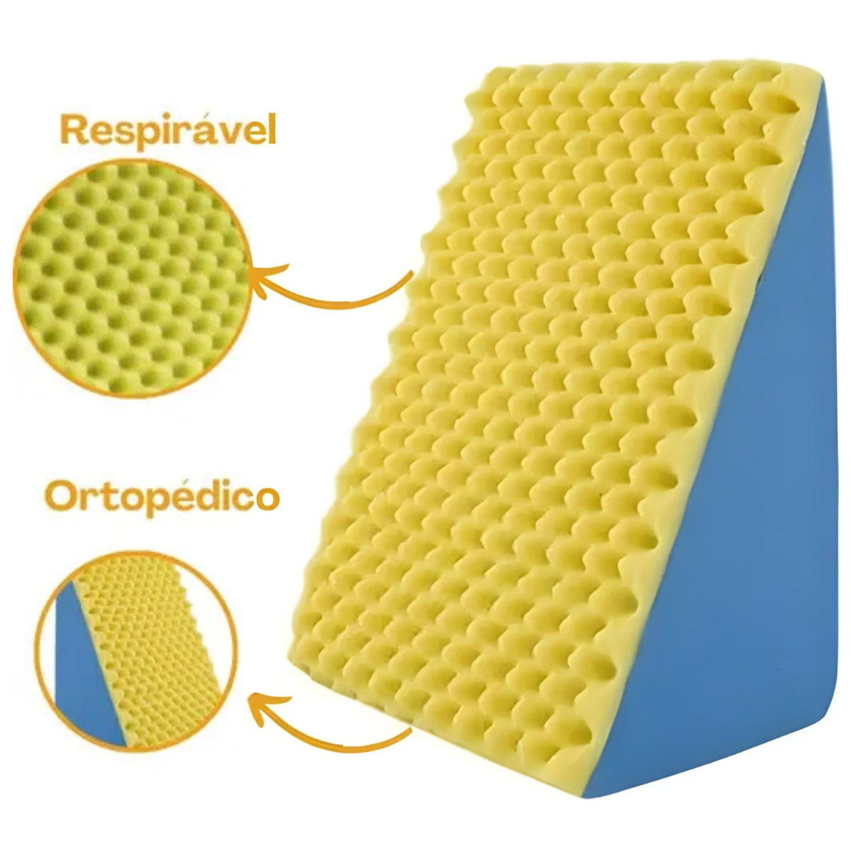 2. Correção Postural: Graças ao seu formato triangular, ajuda a manter a postura correta, seja ao sentar ou deitar, prevenindo dores associadas à má postura.