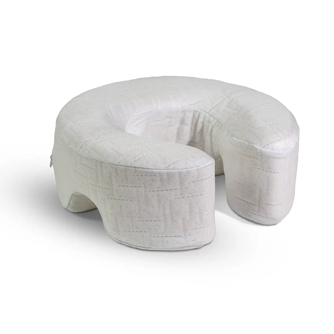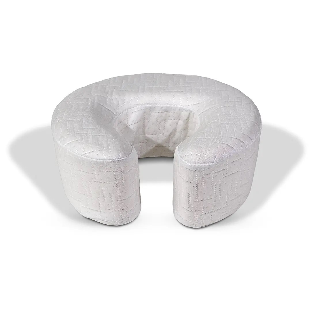 É um produto essencial para proporcionar conforto e alívio facial durante o posicionamento prono (de bruços), especialmente em situações pós-cirúrgicas oculares e faciais. Seu design anatômico e estratégico reduz a pressão ao redor dos olhos e da face, garantindo um encaixe perfeito e promovendo a circulação de ar para uma sensação de bem-estar. Fabricada em látex 100%, e tecido premium ice touch que promove frescor e toque suave e gelado, oferece suporte adequado para evitar úlceras de pressão, além de ser um complemento ideal para tratamentos de massagem terapêutica e relaxante.