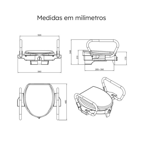 | Tipo | Assento sanitário elevado com apoio e tampa |