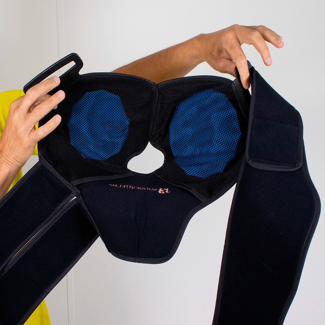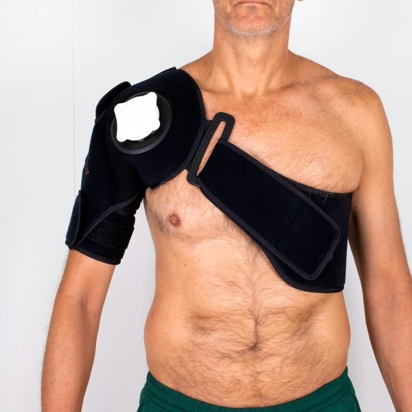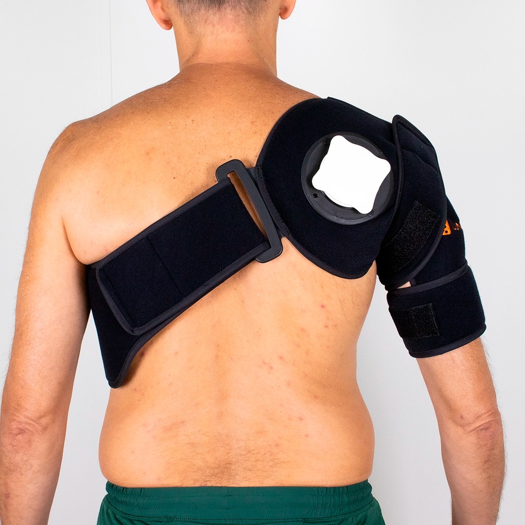 Características: A Bolsa de Gelo com Suporte para Ombro é confeccionada em tecido 100% poliéster de neoprene, oferecendo máximo conforto e perfeita adaptação à pele. Possui um compartimento seguro e eficiente para armazenar gelo, além de um fecho de contato que permite uma fixação firme e ajustável na região do ombro.
