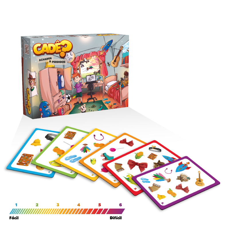 Em Cadê?, você tem de ser rápido para memorizar as imagens. Vire a carta e diga, antes de todos, o item que falta.