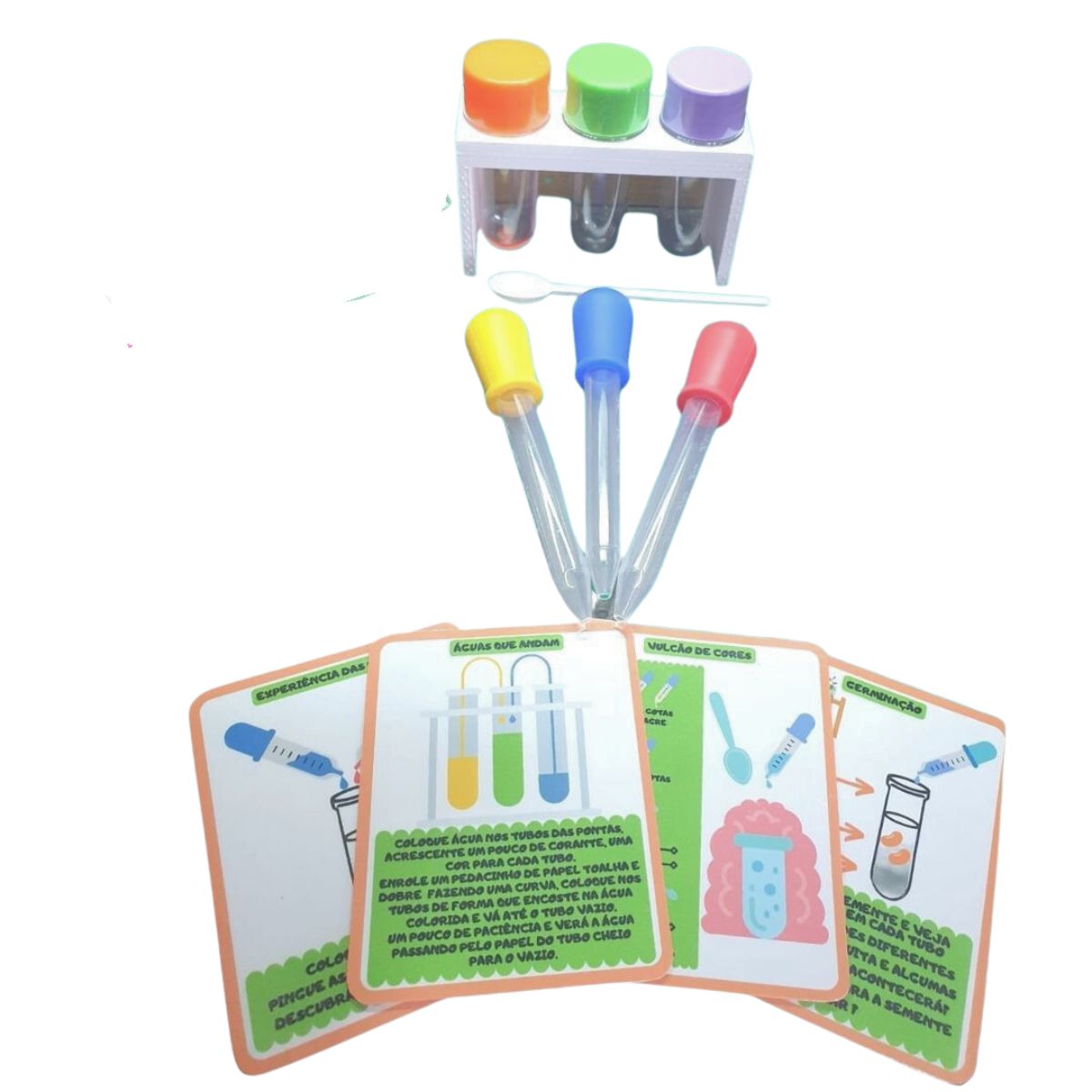 Nada supera a experiência de aprender brincando. Com o Conjunto Pequeno Cientista, as crianças têm a oportunidade de serem verdadeiros cientistas, fazendo suas próprias descobertas. Este kit inclui tubos de ensaio, conta-gotas e uma colher, todos projetados para mãos pequenas e mentes curiosas. Ele encoraja a exploração autônoma e a resolução de problemas, habilidades cruciais para o desenvolvimento infantil. É a combinação perfeita de diversão e educação!