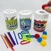 Contém: 1 pinça bola, 1 pinça de 3 pontas, pompons coloridos 2cm (aproximadamente 50 unidades), pompons coloridos 1cm (aproximadamente 100 unidades)