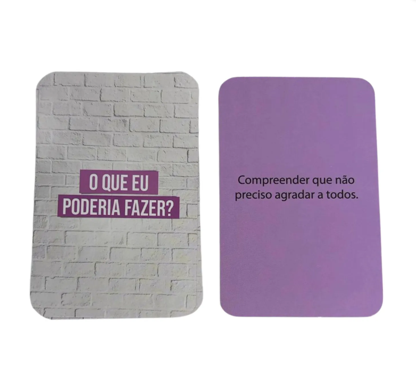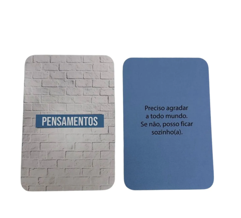 - 60 cartas divididas em 5 categorias: situações, pensamentos, sentimentos, comportamentos e o que eu poderia fazer