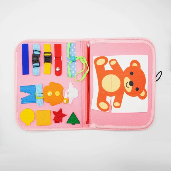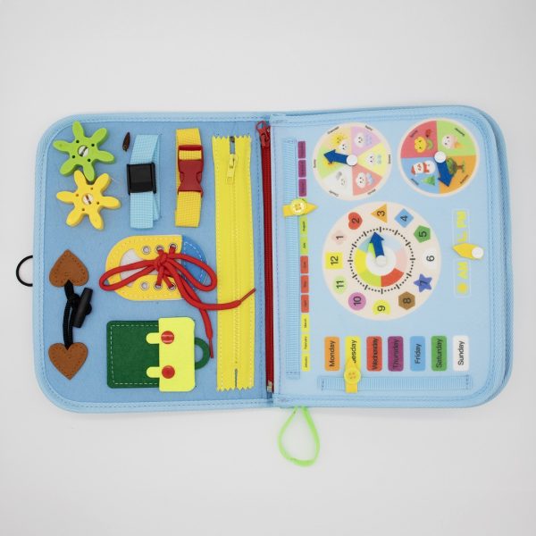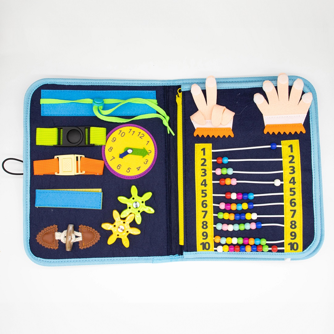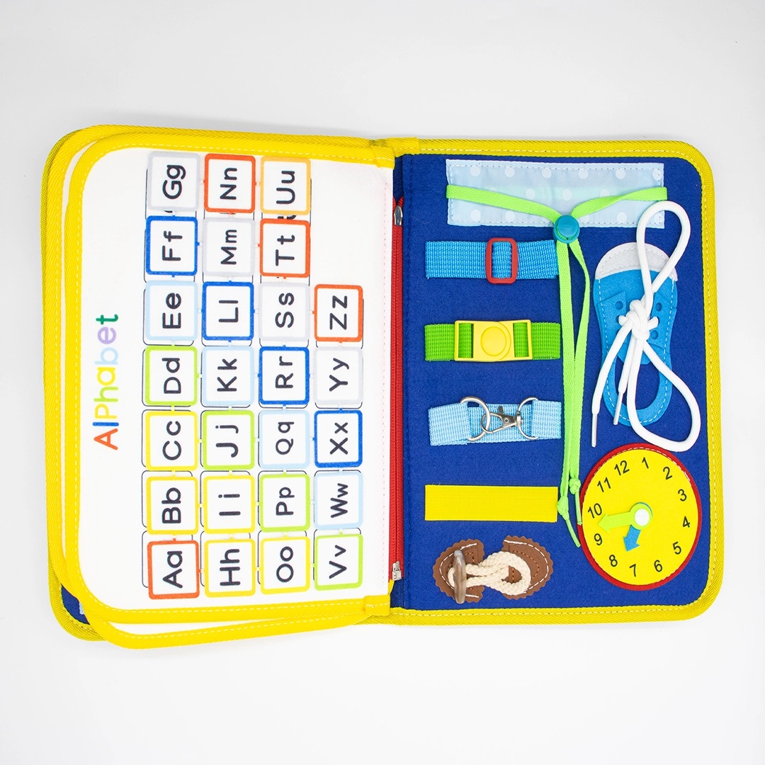 Inspirado nos princípios das atividades montessorianas, esse brinquedo reúne uma série de tarefas práticas – como zíper, botões, cadarços, fivelas, formas e letras – que estimulam a lógica, a paciência e a criatividade das crianças. É uma opção completa de placas sensoriais para crianças, com foco em atividades que simulam situações do dia a dia de forma lúdica e educativa.