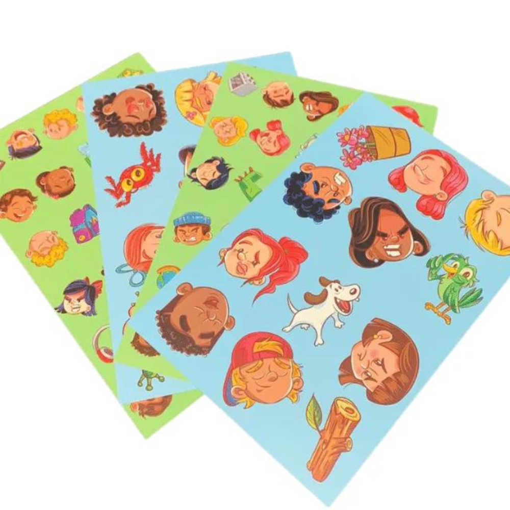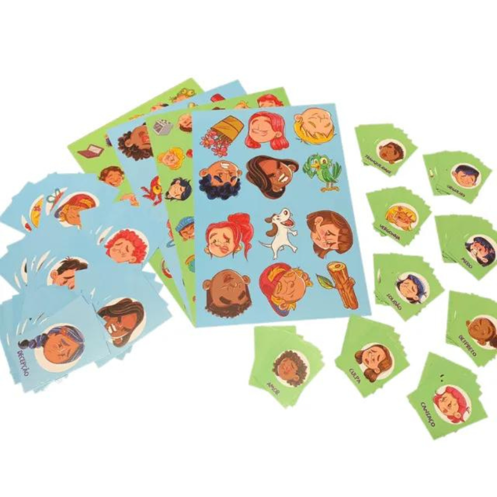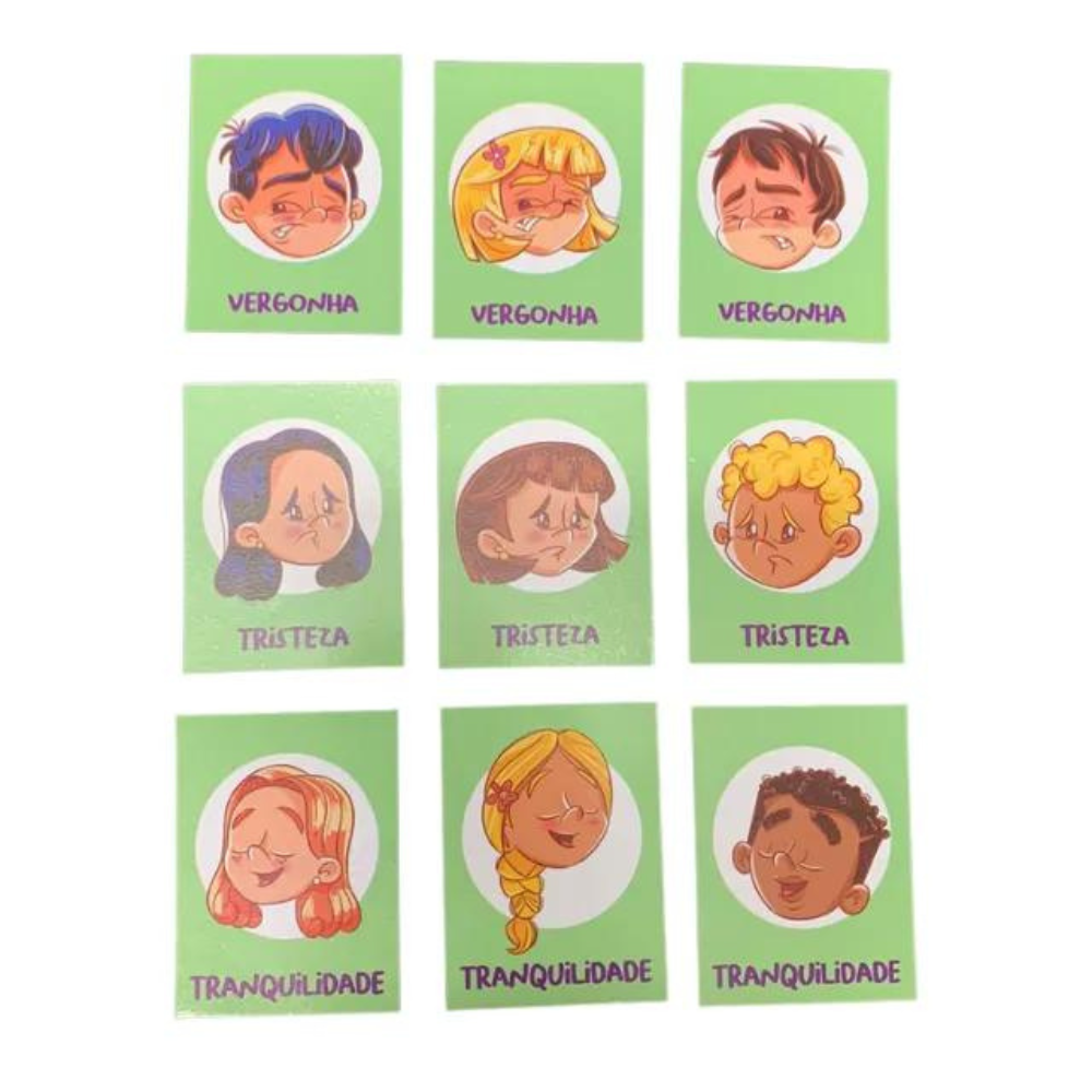 Trabalhar a identificação das expressões faciais, conversar sobre elas e estimular a agilidade visual (rastreio visual), a atenção e a percepção (características pessoais).