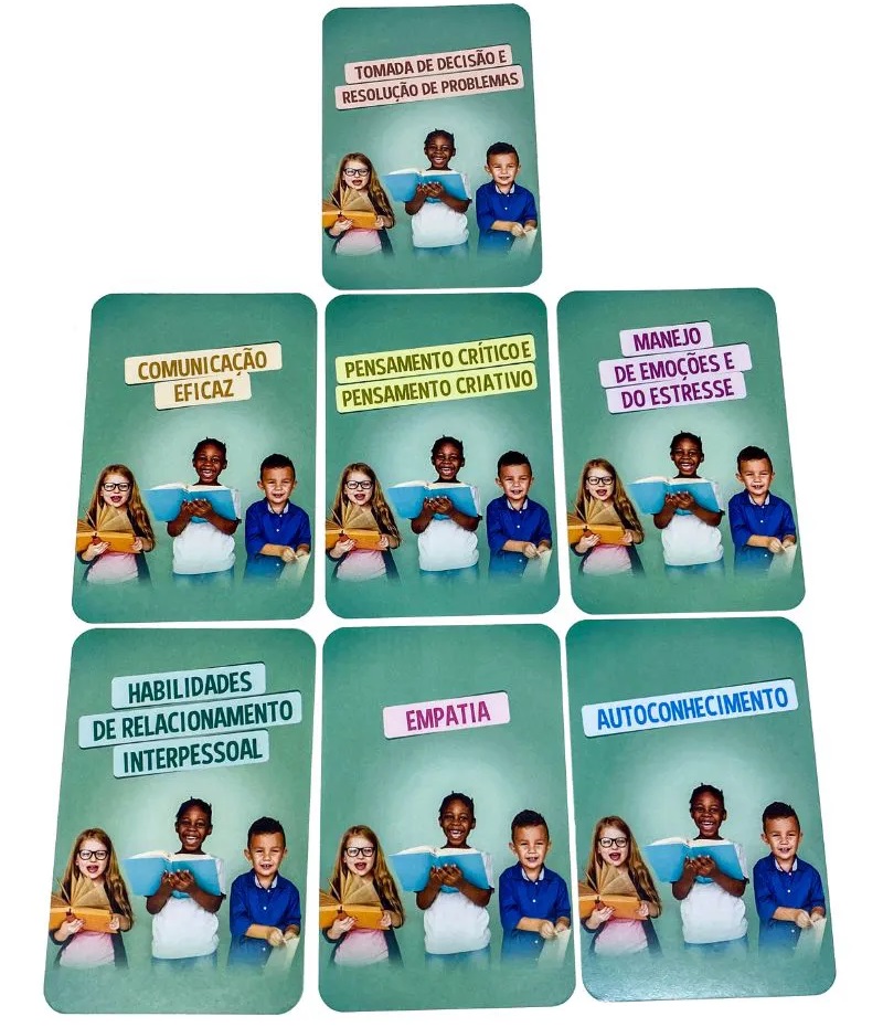 O desenvolvimento das habilidades para a vida é incentivado nestes cards por meio de perguntas reflexivas que facilitam o diálogo sobre o tema. O material disponibiliza sete tópicos com temáticas relacionadas às habilidades para a vida: autoconhecimento, habilidades de relacionamento interpessoal, empatia, manejo das emoções e do estresse, comunicação eficaz, pensamento crítico e criativo e tomada de decisão e resolução de problemas.