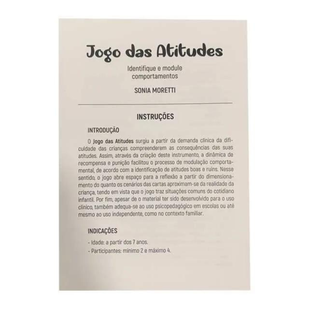 O objetivo deste jogo é a identificação de comportamentos assertivos e não assertivos, a fim do paciente compreender as consequências positivas e negativas de suas atitudes. Assim, o conteúdo do jogo facilita o processo de modulação comportamental através das possíveis reflexões propostas pelo terapeuta.