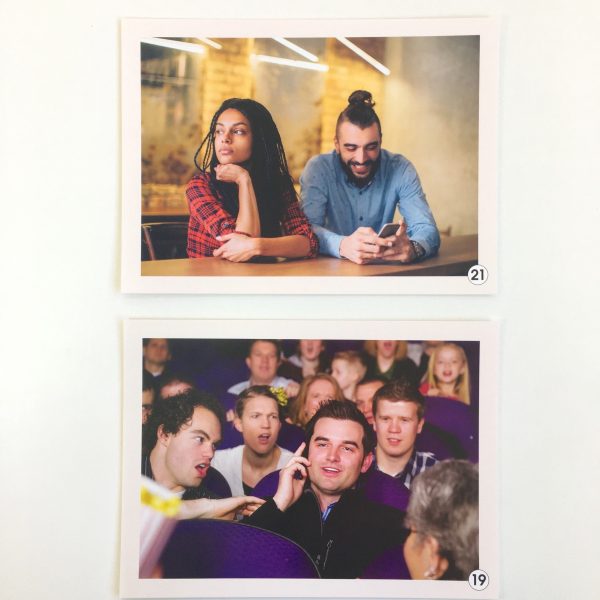 – 30 Fotos que apresentam adolescentes em cenas com várias demandas sociais. Do contexto e das expressões faciais e corporais dos personagens se apreende dicas emocionais, às vezes explicitas, às vezes sutis, para instigar a expressão e treino dos diferentes componentes da cognição social.