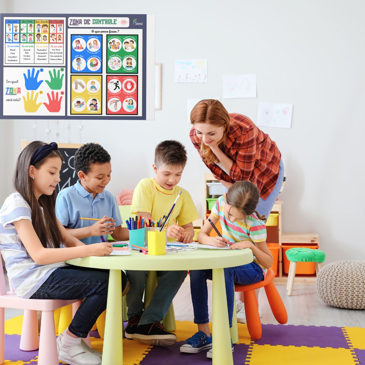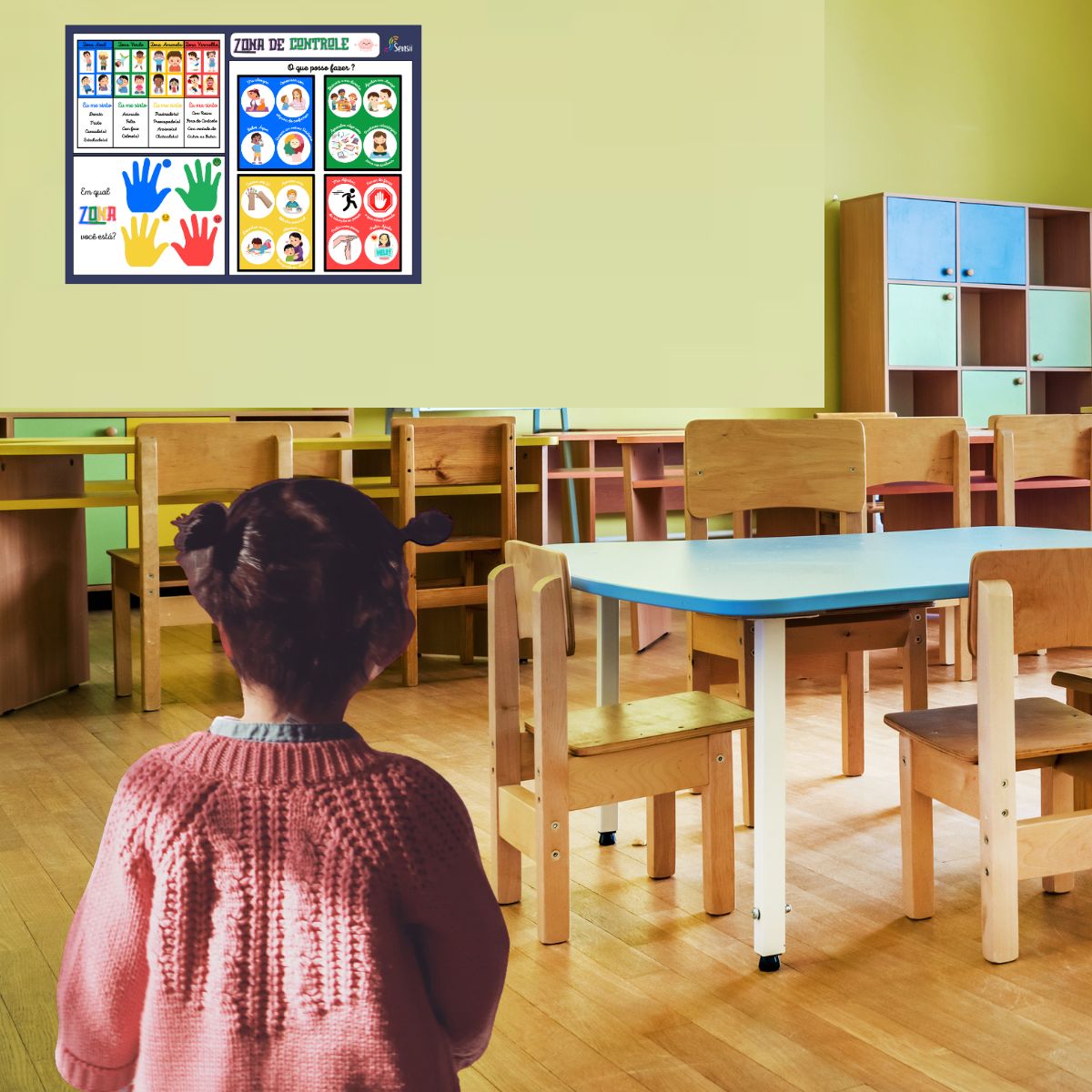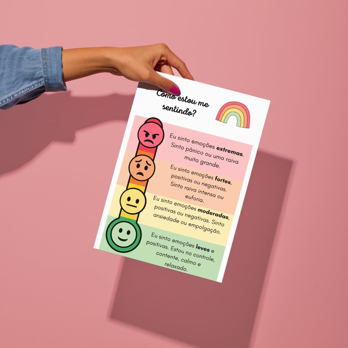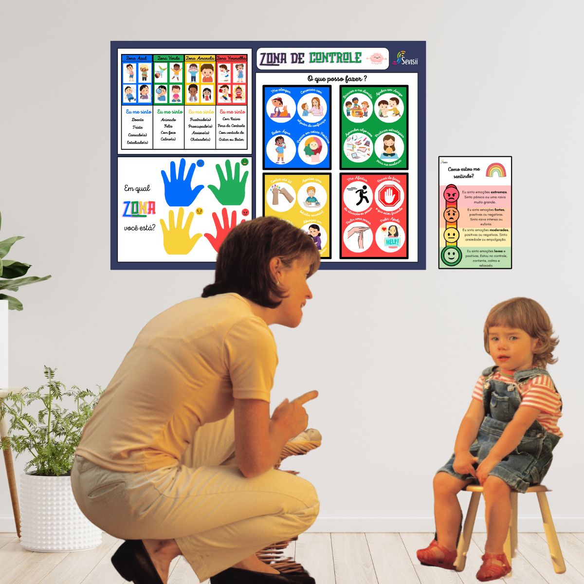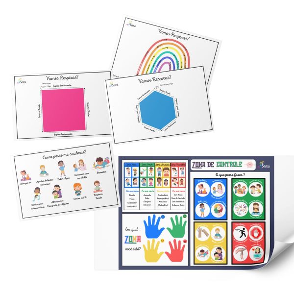 O Kit Cantinho da Calma inclui 8 placas de exercício de respiração que guiam as crianças através de técnicas simples e eficazes para acalmar a mente e o corpo. A placa “Como você se sente?” ajuda as crianças a identificar e nomear suas emoções, promovendo uma maior consciência emocional. Com a placa “Como posso me acalmar?”, os pequenos aprendem estratégias práticas para lidar com o estresse e a frustração. Além disso, o termômetro de como estou me sentindo permite monitorar e regular as emoções ao longo do dia.