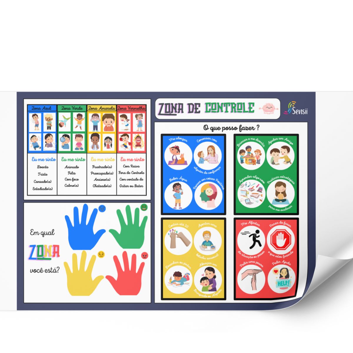 Este kit não só é prático, mas também versátil e durável. Os recursos podem ser pendurados na parede de um cantinho calmo na sala de aula, em casa ou na clínica para facilitar a visualização. Acompanha uma lona grande de 280g (50cm x 70cm) que pode ser utilizada como base para organizar as placas, criando um espaço visualmente agradável e eficaz para a regulação emocional. Seja em casa ou na escola, o Kit Cantinho da Calma é uma ferramenta essencial para o desenvolvimento emocional das crianças.