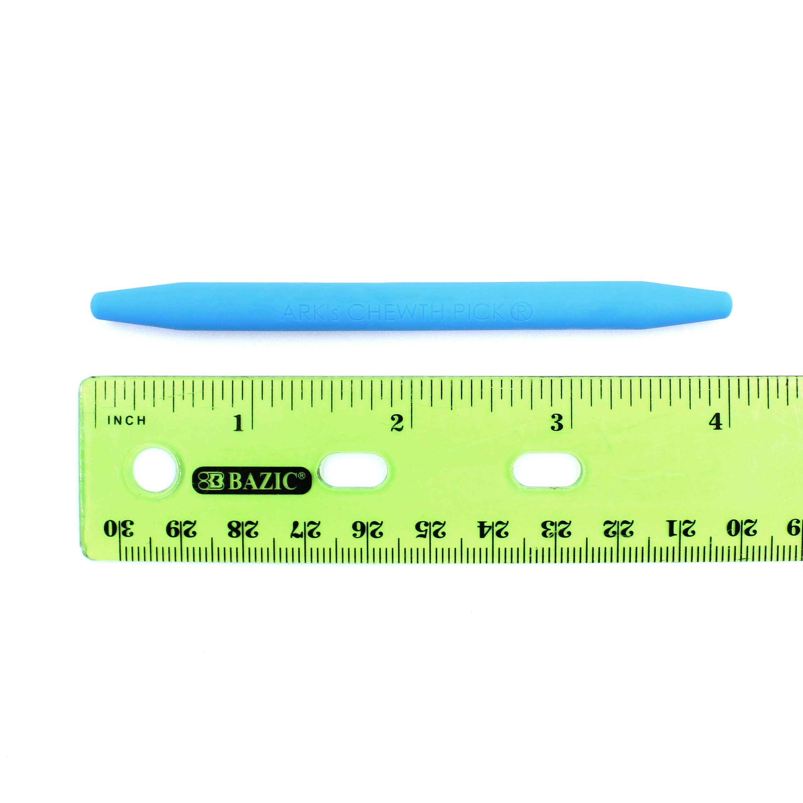 O Chewth Pick® é o mordedor mais fino da Ark, medindo 0,7 cm de diâmetro e 10 cm de comprimento. Por conta do tamanho delgado, são recomendados para adolescentes e adultos com necessidades moderadas de mastigação. Para opções para crianças e / ou para mastigadores mais duros, consulte outros mordedores da ARK.