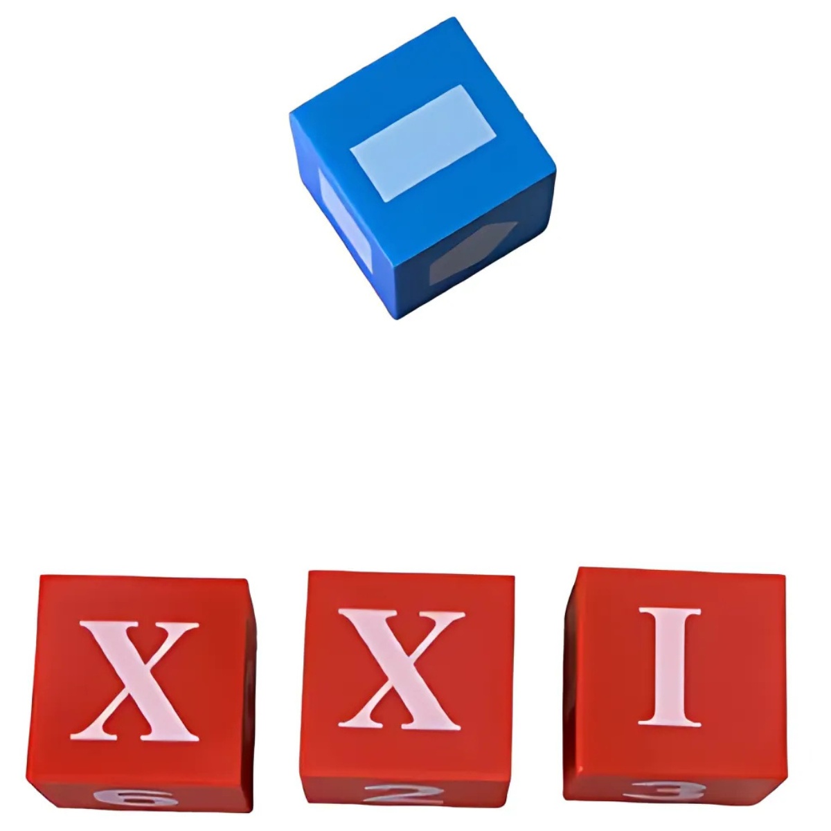 O objetivo do material é posicionar os cubos criando situações de diferentes graus de dificuldade, soma, multiplicação, divisão… os cubos possuem os números de 0 a 9, símbolos matemáticos, formas geométricas e numerais romanos.