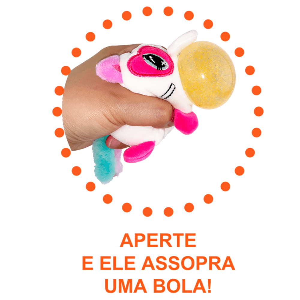 Série Jelly Ball. Fofucho de pelúcia divertido, gostoso de apertar. Aperte e ele assopra uma bola.