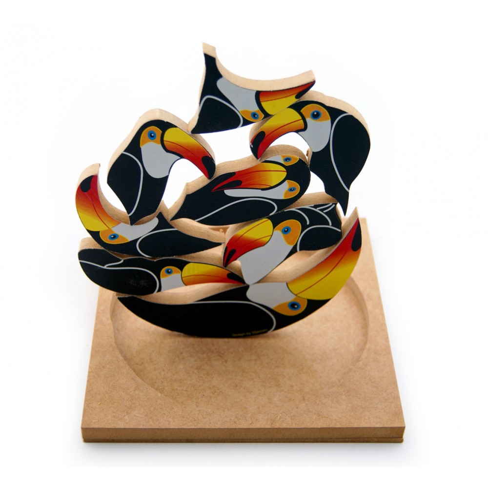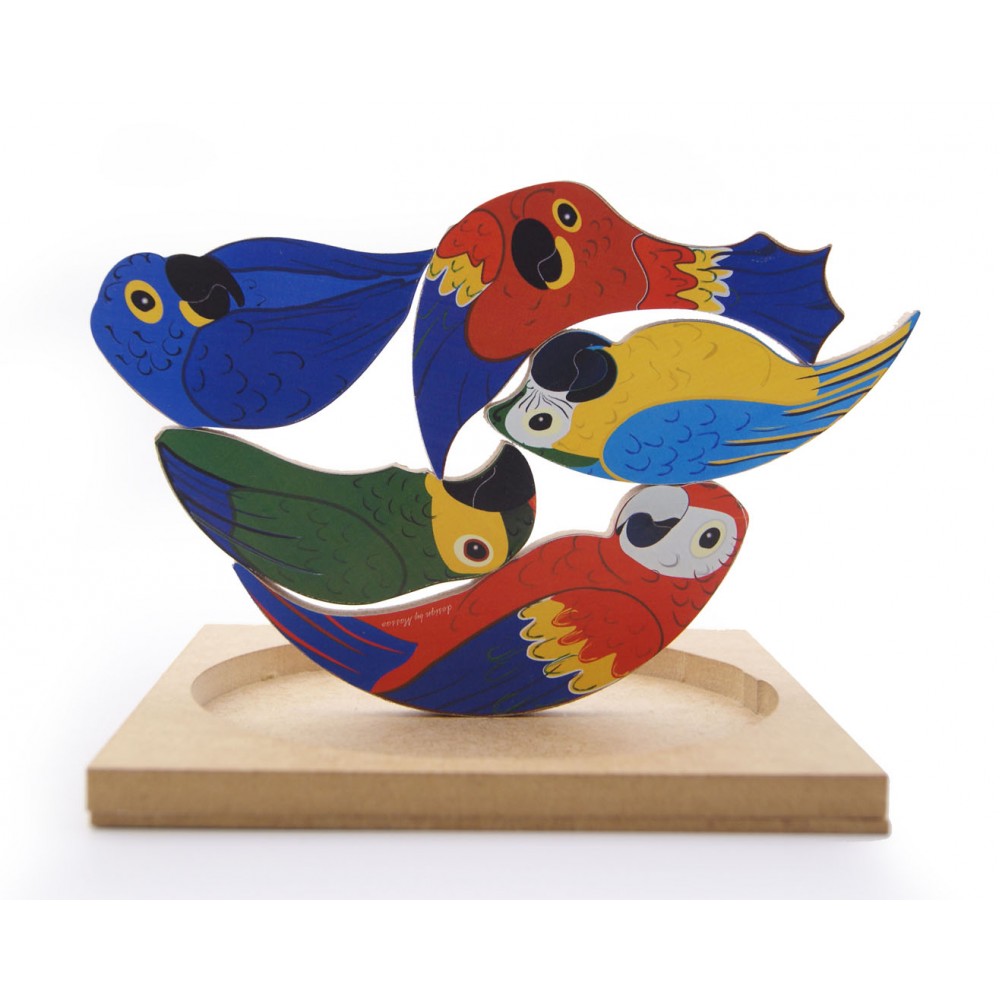 São dois desafios em um produto. Este quebra cabeça, pode ser um quebra cabeça normal encaixando todas as peças dentro da base, mas também pode ser um desafio de habilidade onde as peças devem ser equilibradas empilhando-as uma em cima da outra.