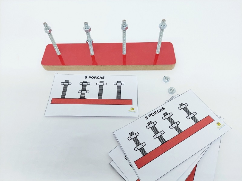 Objetivo: O Recurso Porcas e Parafusos ajuda no desenvolvimento cognitivo e na coordenação motora fina, bem como estimula a atenção.