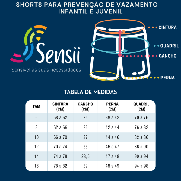 Projetado para crianças e adolescentes, o Short Antivazamento de Fralda Noturno Infantil e Juvenil da marca Sensii, protege contra vazamentos com conforto. Portanto, se você está procurando um short que adicione uma camada extra de proteção contra vazamentos de xixi, esse shorts é a solução. É confeccionado em tecido antirruído que proporciona o máximo conforto e segurança.