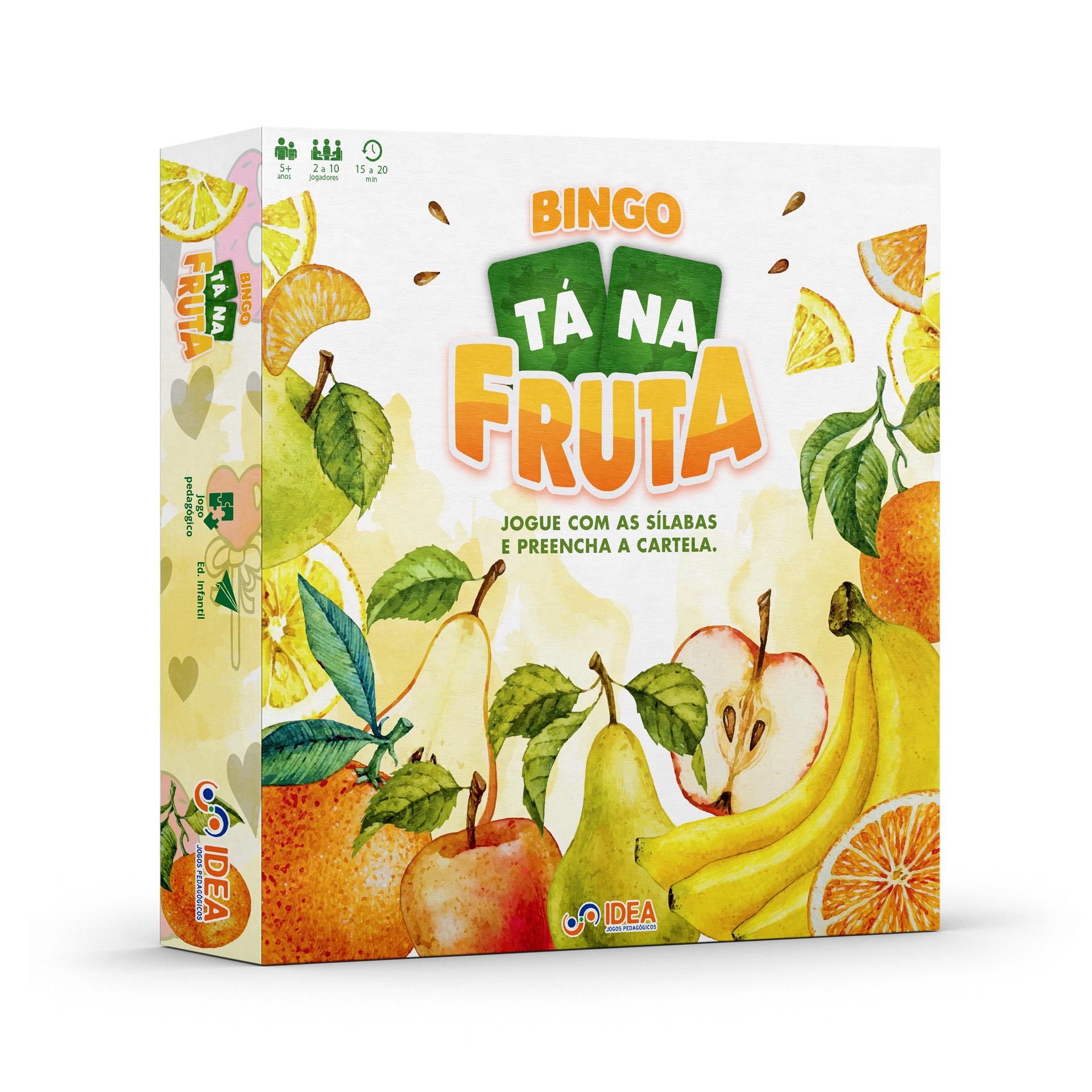 O jogo Bingo TÁ NA FRUTA é uma brincadeira com as sílabas de frutas das regiões do país. Trata-se de um jogo que consiste em identificar as sílabas sorteadas que compõem o nome de frutas.
