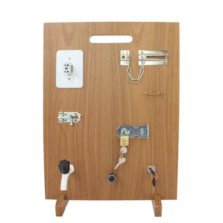 A Tábua de Atividades de Vida Diária – Tábua de AVD’s para Terapia Ocupacional – permite ao paciente treinar como abrir fechaduras de vários modelos, colocar o plug em uma tomada, ascender e apagar a luz, abrir e fechar uma torneira, abrir e fechar cadeado, entre outras atividades que necessitem de uma coordenação motora mais afinada.