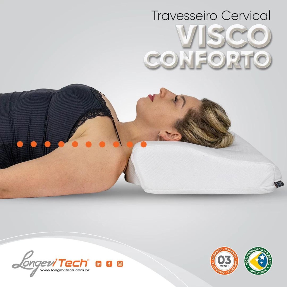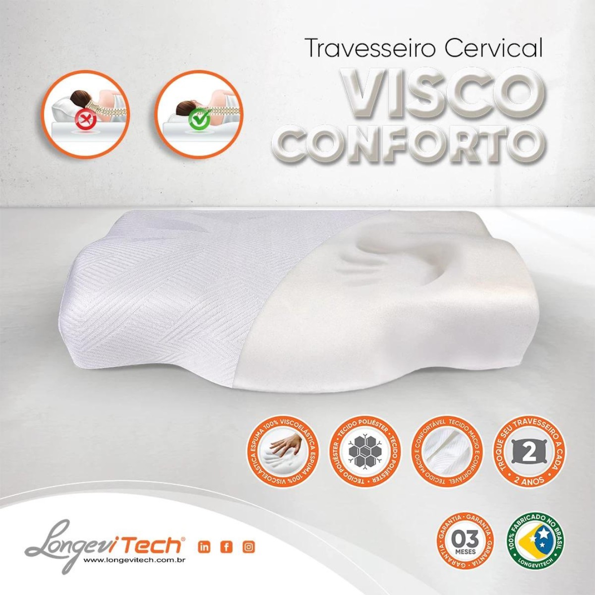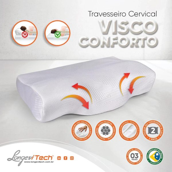 Indicação: O travesseiro Cervical visco conforto é feito de espuma viscoelástica ergonômica, adaptando-se perfeitamente ao formato da cabeça e pescoço, proporcionando suporte a coluna vertebral e relaxamento dos músculos eretores da cervical, dos ombros e trapézio. Ele mantém a posição adequada e é uma excelente opção para quem busca conforto e suporte durante o sono.