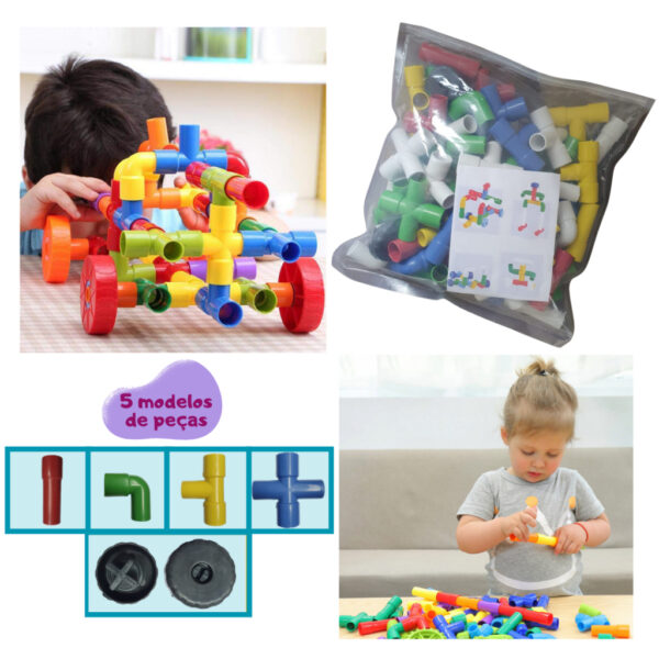 Criatividade Sem Limites: Com um mundo de possibilidades nas mãos, as crianças podem criar suas próprias aventuras e cenários. Os tubos de montar não têm regras, o que promove a imaginação e a inovação.