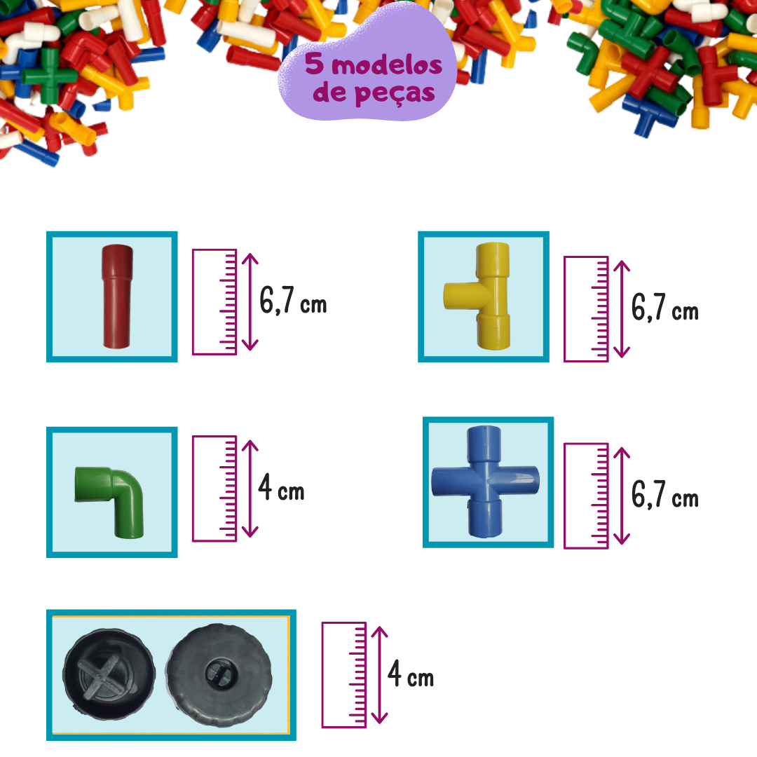 Nossos tubos de montar são projetados com qualidade superior, fabricados com materiais não tóxicos e resistentes, garantindo a segurança e a diversão de seus pequenos.